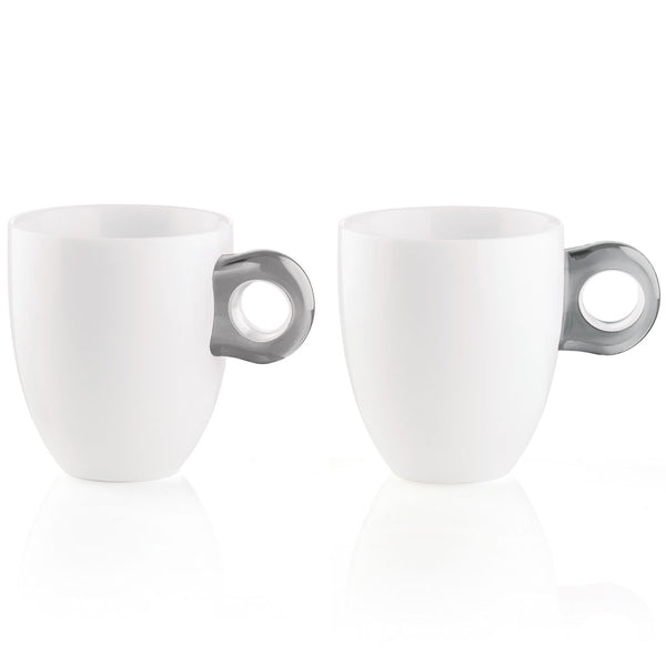 Add some style to your kitchen with these trendy Gocce mugs from Guzzini. Made from porcelain and high grade plastic, these mugs combine simple design and a touch of contemporary flair. The comfortable handles stay cool even when they are warmed in the microwave. A perfect gift for any coffee lover!