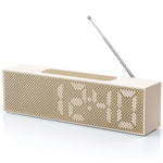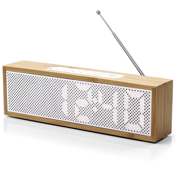 Probably the coolest clock radio of all time! This ultra modern clock radio is brought to you by French designers Lexon. The body of this high quality clock is constructed from natural bamboo and the grill that covers the time and speaker is made from a tough ABS rubber. The time and radio frequency are displayed by LEDs behind the rubber grill which gives this radio a trendy industrial look. With features that include radio presets and an autodimmer that dims the brightness of the radio at night time, this designer clock radio is the perfect accessory for any contemporary bedroom. It is powered by mains electricity, but also includes a battery compartment so if there is a power cut or the plug is accidentally removed the time will remain on and the alarm will still work!